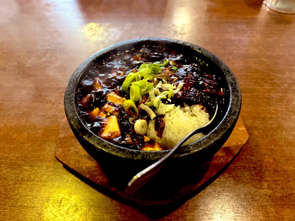 麻婆豆腐石焼ご飯はこの店ぐらいでしか見かけた事がないけどマジで好き。激アツの麻婆豆腐と米を同時に喉に流し込む瞬間が堪らない。酒も追加するともう最高。
