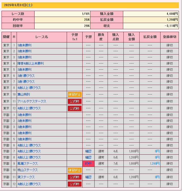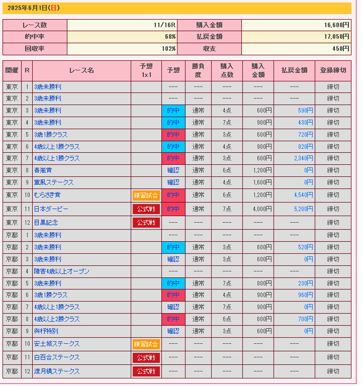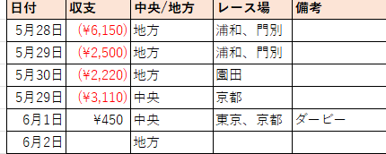 6/1(日)はぼちぼち当たった。成績をよく見るようにしていた記憶がある。