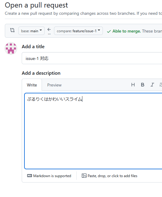 あとは自分にプルリクを出し、承認する
