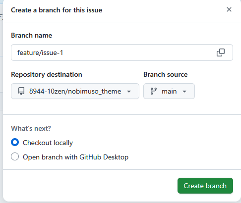 issueに紐づくブランチを作る
